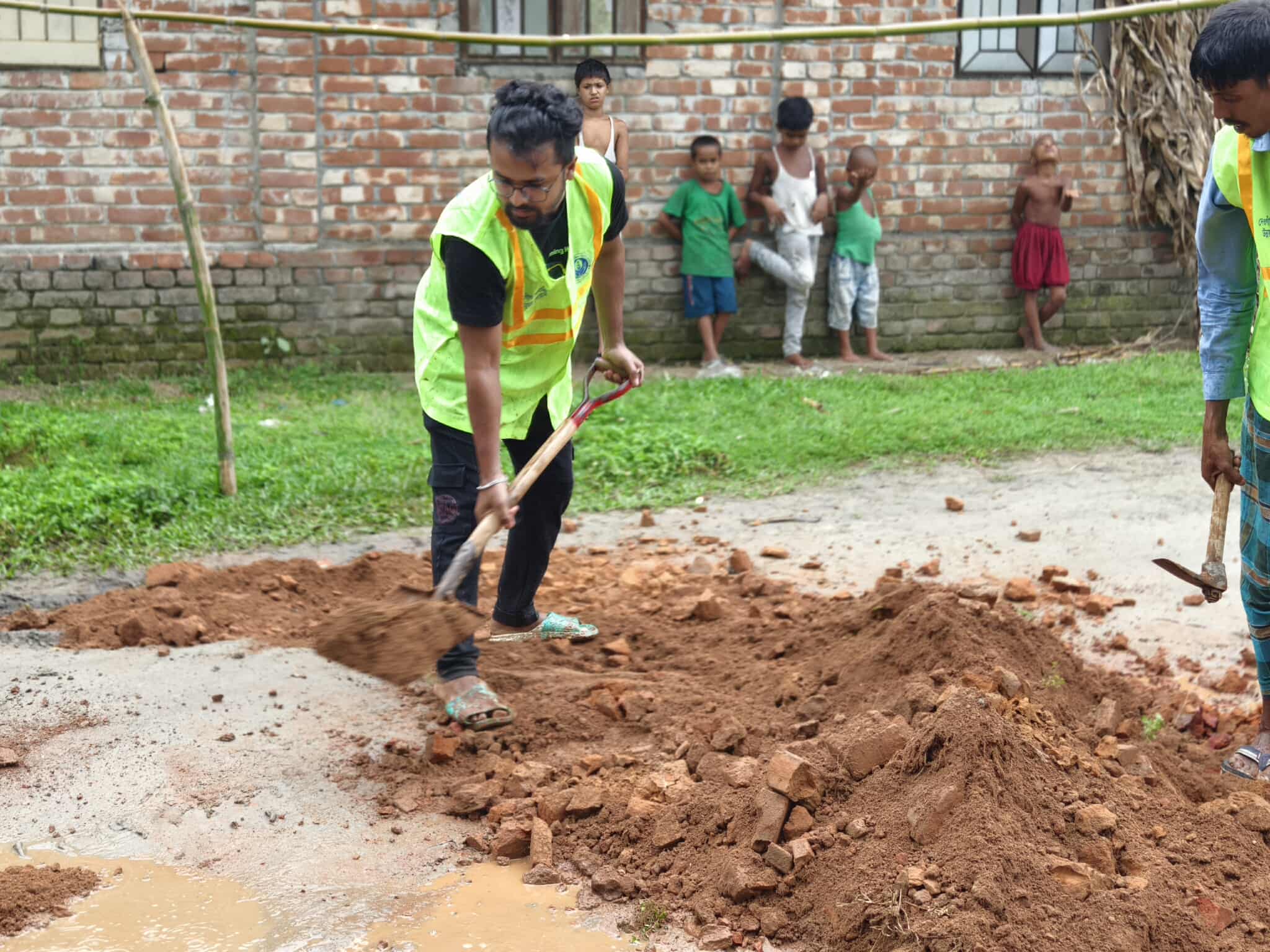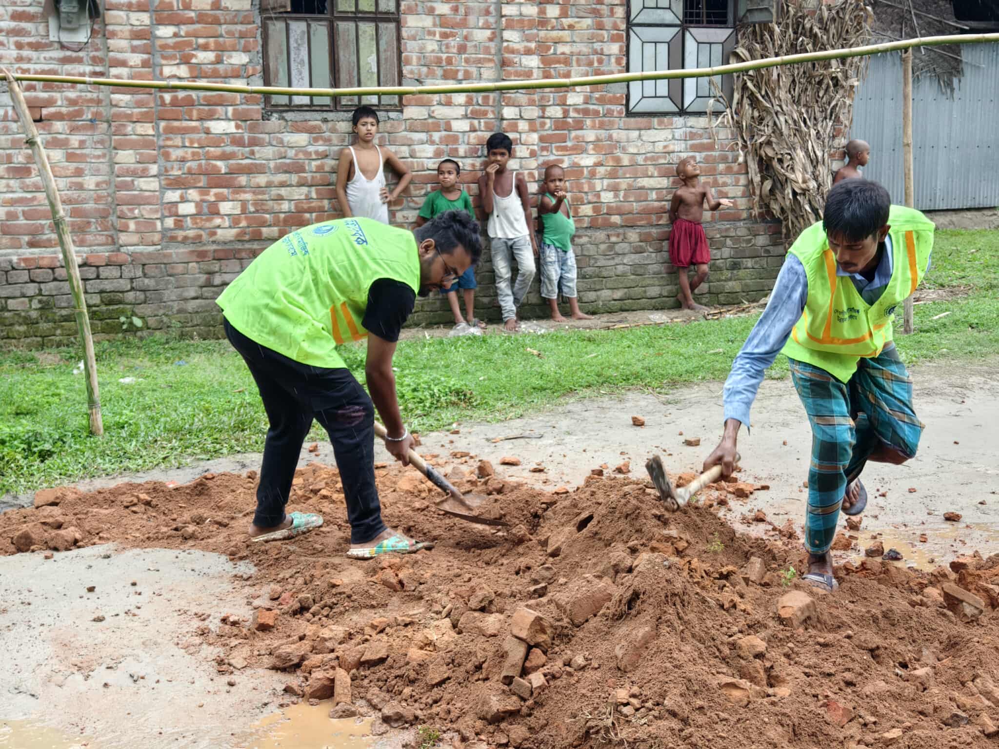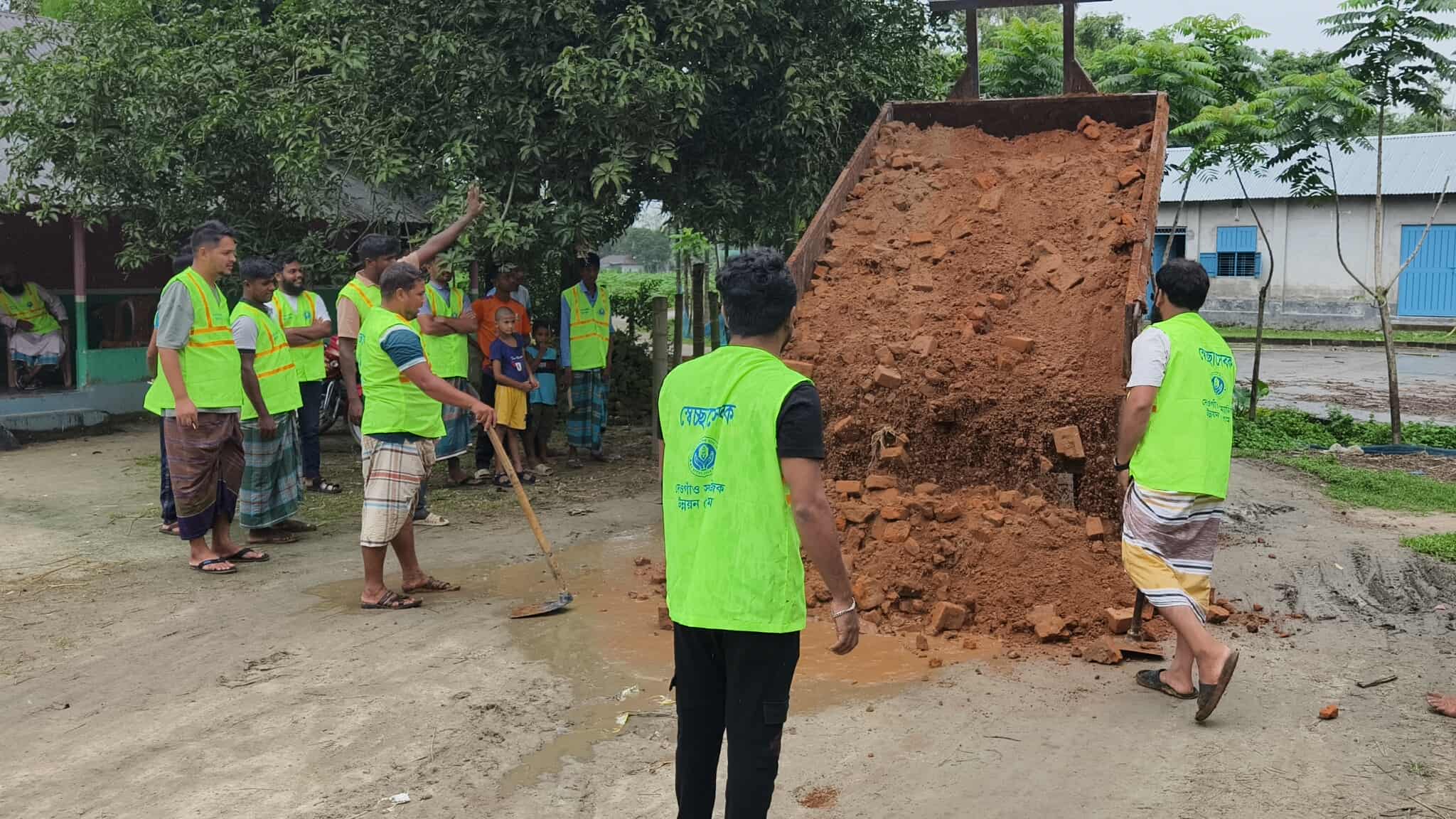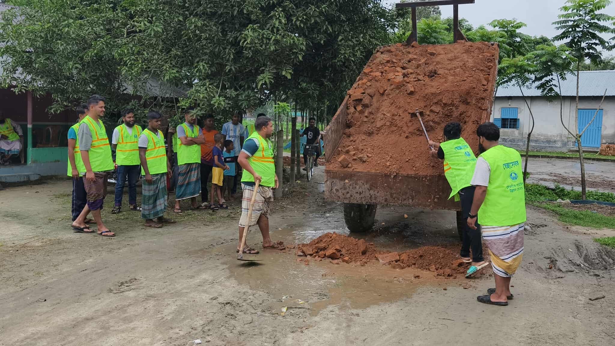 মাটি সমান করে দেওয়ার কাজে মনোযোগী আমাদের নিবেদিত স্বেচ্ছাসেবী।